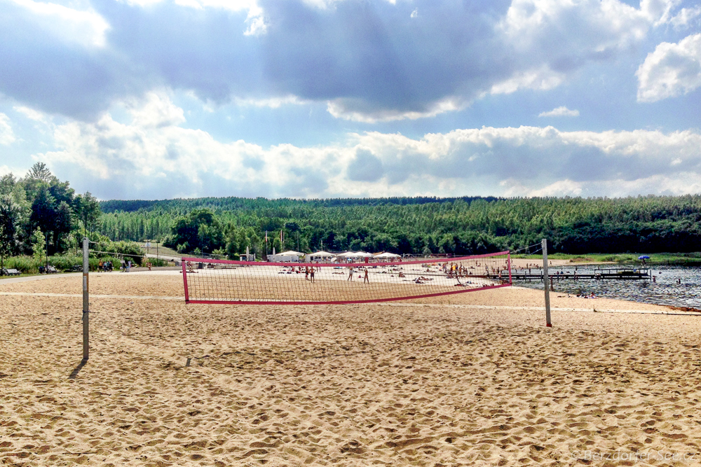 Na plaży portowej w górnej części półwyspu Berzdorfer See można wynająć boisko do siatkówki plażowej.
