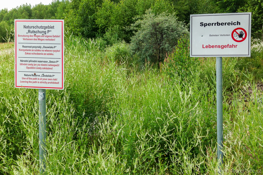 Wejście do chronionego rezerwatu Sesuv P w zachodniej części jeziora Berzdorfer See.