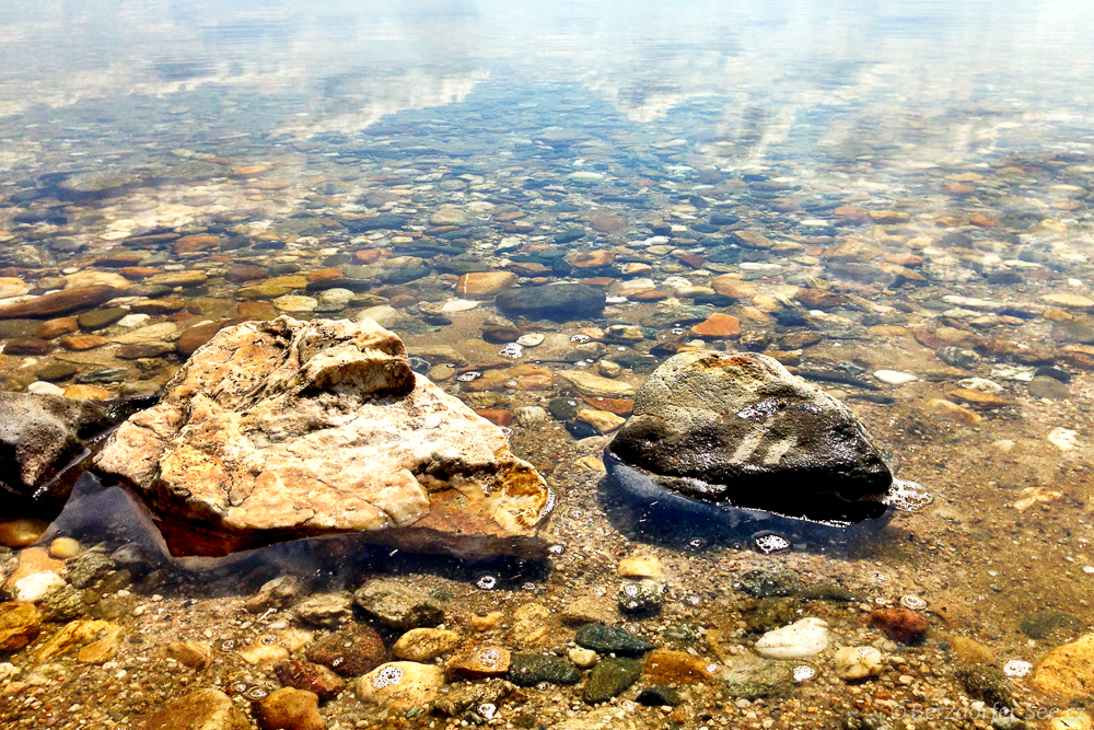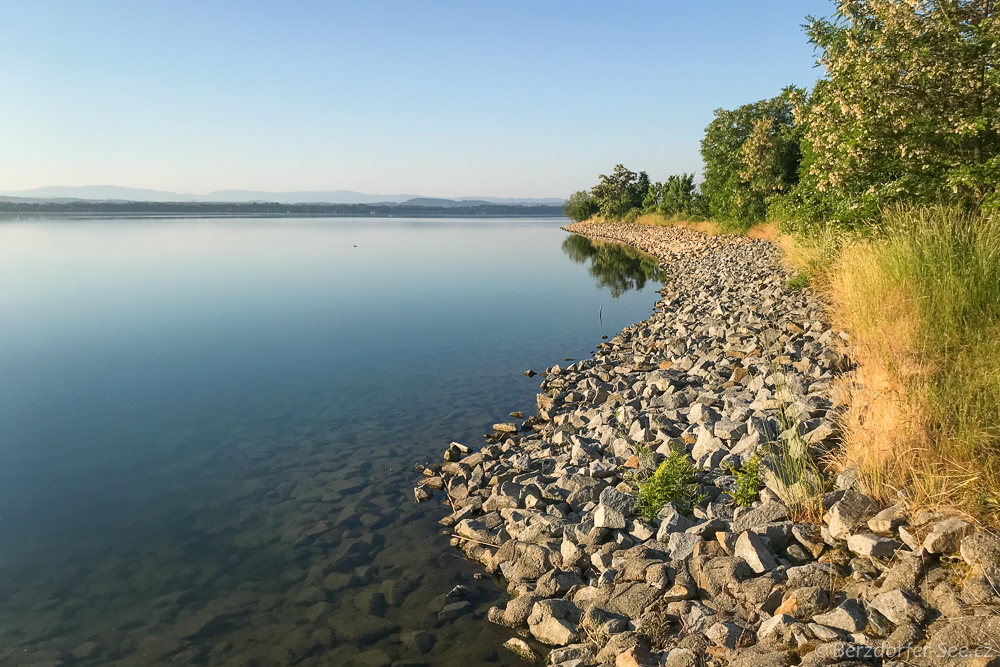 Pomiędzy plażami jeziora Berzdorfer See brzegi są albo trawiaste, albo składają się z dużych skał.