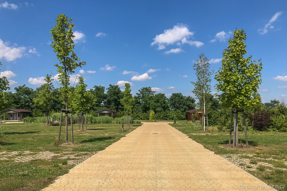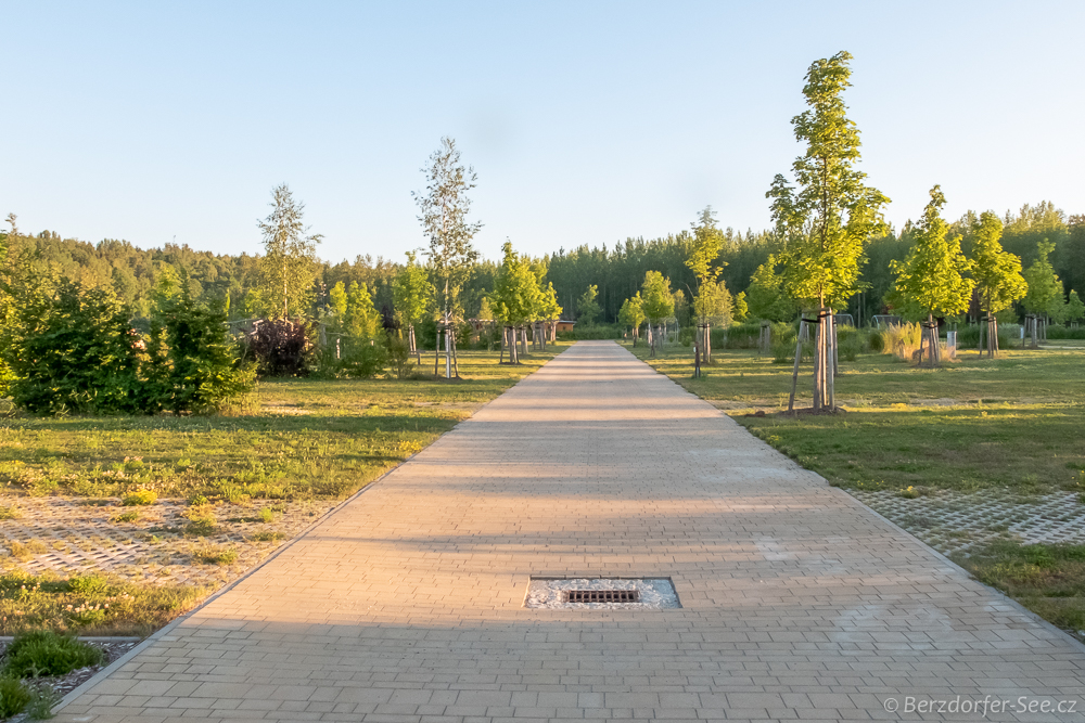 Ścieżka łącząca place mieszkalne, camping przy Berzdorfer See.