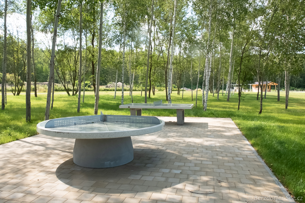 Na kempingu znajdują się stoły do tenisa stołowego i innych gier.