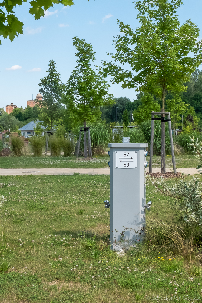 Kolumna z wodą, prądem, odpadami, obóz Blaue Lagune, Berzdorfer See.