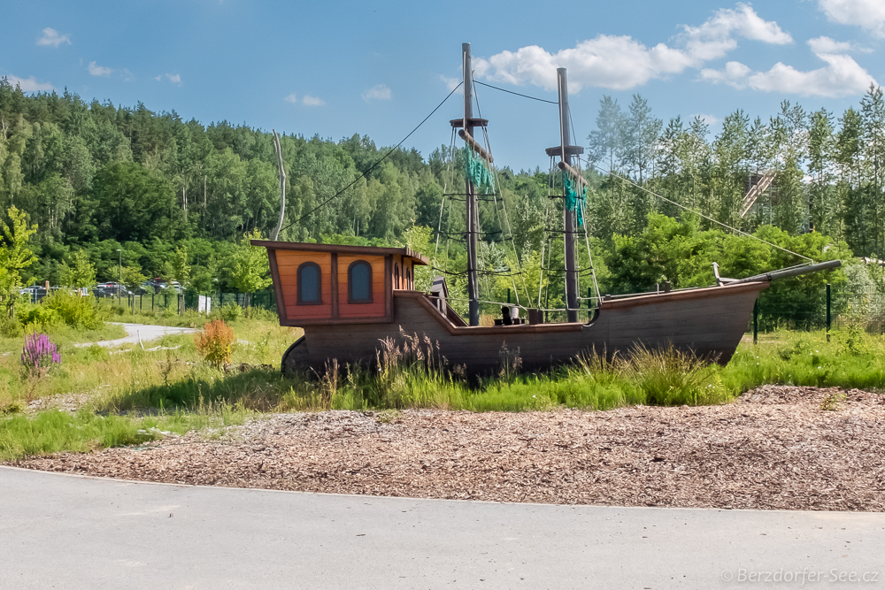 Statek piracki na kempingu Blaue Lagune, jezioro Berzdorf.