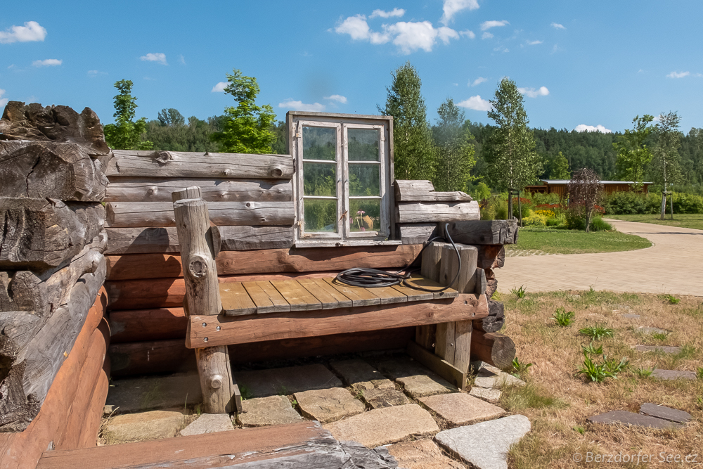 Kabiny z widokiem na dawny budynek górniczy, Berzdorfer See.